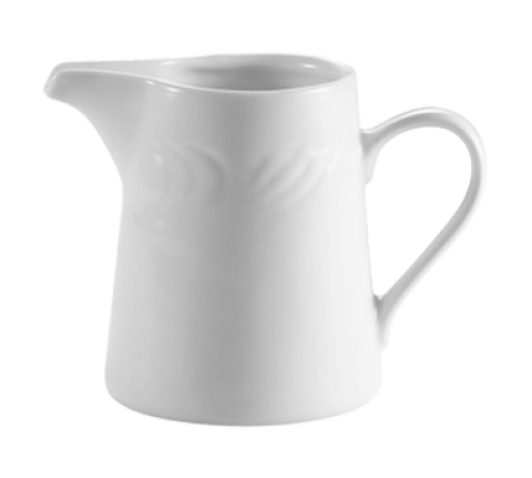 Roosevelt Creamer, 6 oz., 3-3/4"L x 2-1/4"W x 3-1/2"H, with handle, embossed, dishwasher, oven and microwave safe, porcelain, Super White (Sold by case)