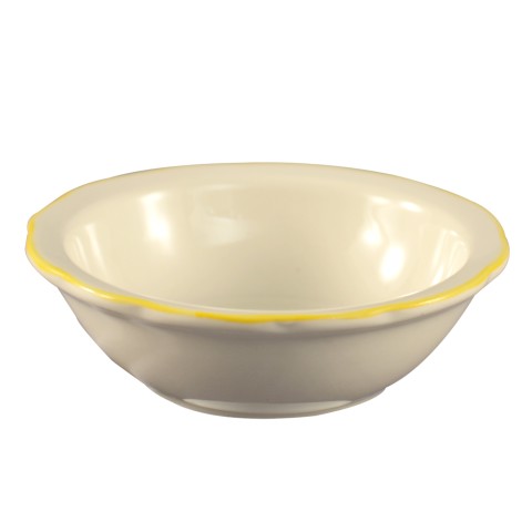 Seville Fruit Dish, 5 oz., 4-3/4" dia. x 1-3/8"H, round, scallop edge, dishwasher and oven safe, stoneware (ceramic), Gold Band/American White (Sold by case)