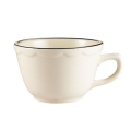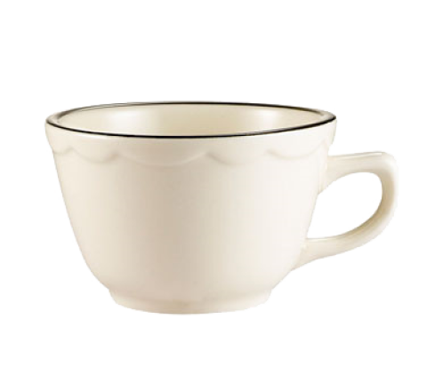 Seville Coffee Cup, 7 oz., 3-3/4" dia. x 2-3/8"H, round, tall, scallop edge, dishwasher, oven and microwave safe, stoneware (ceramic), Black Band/American White (Sold by case)
