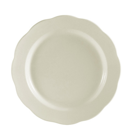 Plate, 11-1/4", scallop shaped rim, American white stoneware (sold by case)