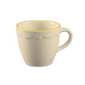Seville Demitasse Cup, 3-1/2 oz., 2-1/2" dia. x 2-1/4"H, round, scallop edge, dishwasher and oven safe, stoneware (ceramic), Gold Band/American White (Sold by case)