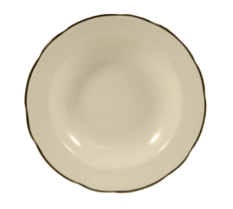 Seville Soup Plate, 10 oz., 9" dia. x 1-1/2"H, round, scallop edge, dishwasher, oven and microwave safe, stoneware (ceramic), Black Band/American White (Sold by case)
