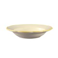 Seville Soup Plate, 10 oz., 9" dia. x 1-1/2"H, round, scallop edge, dishwasher and oven safe, stoneware (ceramic), Gold Band/American White (Sold by case)