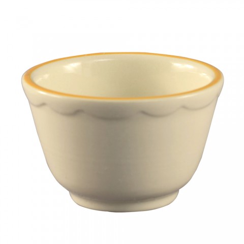 Seville Bouillon Cup, 7-1/4 oz., 4" dia. x 2-3/8"H, round, scallop edge, dishwasher and oven safe, stoneware (ceramic), Gold Band/American White (Sold by case)