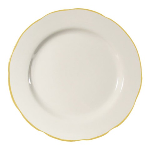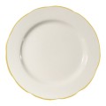 Seville Plate, 5-1/2" dia. x 3/4"H, round, scallop edge, dishwasher and oven safe, stoneware (ceramic), Gold Band/American White (Sold by case)