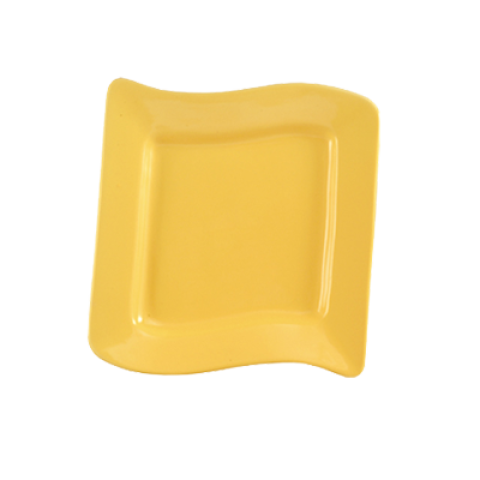 Soho Plate, 8-1/2"L x 8-1/2"W x 1"H, square, wavy, dishwasher, oven and microwave safe, stoneware (ceramic), Yellow (Sold by case)