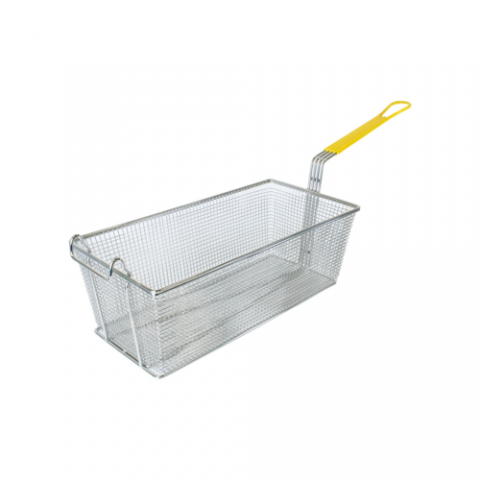 Fry Basket, 17"W x 8-3/8"D x 6"H, 12" yellow handle, nickel plated (QTY break = 6 each)