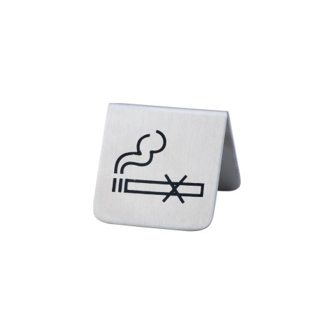 Table Tent Sign, 2-1/2” x 2”H, No Smoking Symbol, stainless steel (QTY break = 12 each)