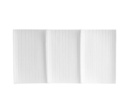 Sushi Signature Divided Plate, 14-7/8"L x 7-3/4"W x 3/4"H, rectangular, 3-compartments, embossed, dishwasher, oven and microwave safe, porcelain, Bone White (Sold by case)