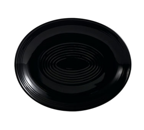 Tango Platter, 11-1/2"L x 9-1/4"W x 1-1/2"H, oval, coupe, embossed, dishwasher, oven and microwave safe, porcelain, Black (Sold by case)