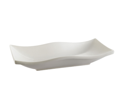 Fashionware Platter, 48 oz., 14"L x 6-1/4"W x 2-3/8"H, rectangular, deep, wavy rim, dishwasher, oven and microwave safe, porcelain, Bone White (Sold by case)