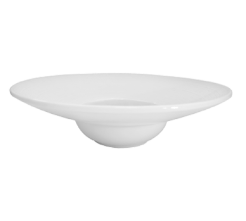 Transitions Gourmet Bowl, 7-1/2 oz., 10-1/2" dia. x 2-1/2"H, round hat shape, wide rim, embossed, dishwasher, oven and microwave safe, porcelain, Super White (Sold by case)