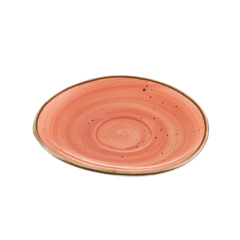 Tucson Saucer, 6-1/4" x 5-7/8", irregular round, dishwasher, oven and microwave safe, porcelain, reactive glaze, Coral (fits TUS-1-CRL) (Sold by case)