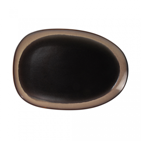 Venus Platter, 14-1/4", egg shape, midnight black/desert beige (sold by case)