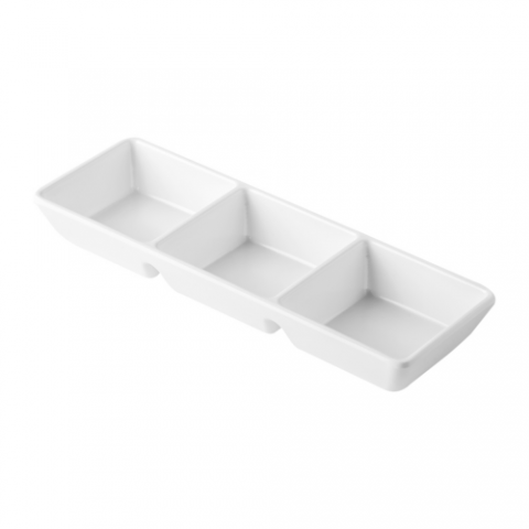 Dish, 3oz., 8-1/2"W x 3"D x 1-1/4"H, rectangular, 3-compartments, matte white (Sold by case)