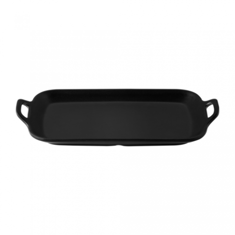 Serving Platter, 10-3/8"W x 5-1/2"D x 1-1/4"H, rectangular, with dual handles, matte black (Sold by case)