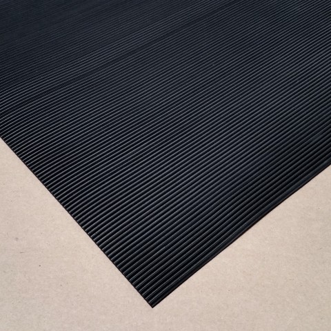 Deep Groove Runner Matting, 3'W, 1/4" thick, corrugated rubber grooves scrape debris from shoes, pliable, for floor protection, slip resistant, black (priced by linear foot), (contact factory for price)