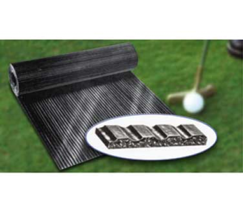 Duratred Runner Matting, 3' x 22' roll, 1/4" thick, rayon & nylon reinforced rubber with extra wide corrugations, golf spike & cleat resistant, for use in weight rooms, horse trailers, hockey rinks, golf courses, general industrial & heavy traffic areas, black, (contact factory for price)