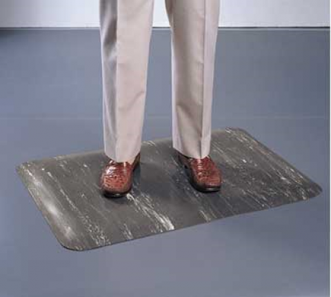 Cushion Comfort Anti-Fatigue Mat, 3' W, 1/2" thick, marbelized laminated rubber top bonded to insulated sponge base, safety bevel edge all sides, for check stands, work stations, assembly lines, & behind counters (priced per linear foot), available up to 30' long