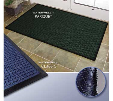 Water Well II Walk Off & Entrance Mat, parquet, 4' x 6', 3/8" thick, 100% polypropylene, smooth rubber backing with skid resistant pattern, border all sides, traps dirt & moisture, for indoor high traffic areas, charcoal