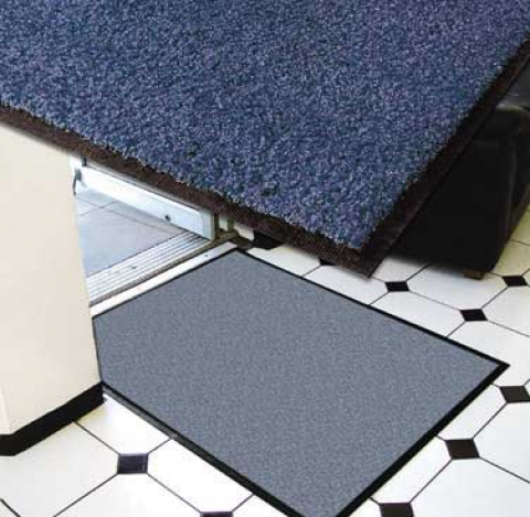 High Traffic Entrance Mat, 4' x 6', 3/8" thick, nylon yarn, cleated nitrile rubber backing with border on all sides, traps dirt & moisture, resists fading & matting, for indoor use, commercial machine washable