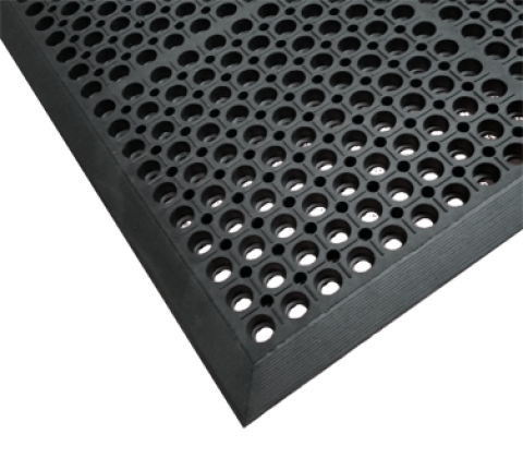 VIP Duralok Matting, single, 3'-2" x 5'-1", 3/4" thick, anti-fatigue & anti-slip mat, heavy duty molded rubber, bevel edge all sides, excellent drainage, for use in bars, service areas, & any non-grease kitchen/industrial area, black
