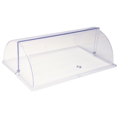 Roll-Top Lid, 21-1/2" x 13-1/4", metal hinges, Eastman Tritan copolyester, clear (fits PS-CBC-2, PS-CBC-4, PS-TBS, PS-TBS-HD, & over (3) third size or (2) half size 2-1/2" deep steam pans)