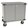Locking Utility Cart, enclosed, (1) adjustable storage shelf, stainless steel construction with (1) handle, & stainless panels, rubber bumpers, silent polypropylene casters (2 with brakes; 2 with directional locks), Made in USA