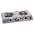 Portable Double Hot Plate, countertop, electric, 21-1/4" W, side by side, (2) 6" tubular burners, individual infinite heat controls, signal light, on/off rocker switch, stainless steel housing, non-skid feet, 120v/60/1-ph, 1650 watts, 13.8 amps, NEMA 5-15P, UL, cUL, Made in USA