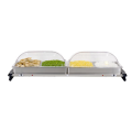 Jumbo Buffet Server, countertop, 41-1/4" x 14" warming zone, holds (4) half size steam table pans (included), (2) clear Eastman Tritan™ copolyester rolltop lids with metal hinges, (2) variable heat controls, 155°-205°F temperature range, safety signal light, cool-touch handles, includes (2) removable stainless pan holders, stainless steel construction, non-skid feet, 120v/60/1-ph, 5.0 amps, 600 watts, NEMA 5-15P, UL, Made in USA (ships in two cartons)