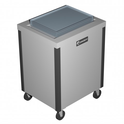 Caddy Magic Tray Dispenser, cabinet style, unheated, single stack for 14" x 18" trays, capacity up to (75) trays, self-leveling platform, plastic vertical corner bumpers, 4" swivel casters, NSF
