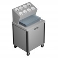 Caddy Magic Tray & Silverware Dispenser, cabinet style, unheated, (8) hole silverware holder, single stack for 16" x 22" trays, capacity up to (75) trays & (40) pieces of silverware each cylinder, self-leveling platform, plastic vertical corner bumpers, 4"swivel casters, NSF