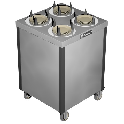 Caddy Magic Dish Dispenser, cabinet style, unheated, (4) self-leveling adjustable dispensing cylinders, approximate dish size 0" to 5-3/4" dia., stainless steel top, plastic corner bumpers, 4" swivel casters, NSF