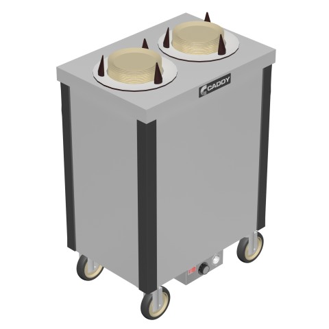 Caddy Magic Dish Dispenser, cabinet style, heated, (2) self-leveling adjustable dispensing cylinders, approximate dish size 5-7/8" to 7-1/4" dia., stainless steel top, plastic corner bumpers, stainless steel electric control box, on/off switch, 4" swivel casters (2 with brakes), ETLus, NSF