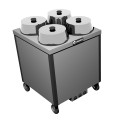 Caddy Magic Dish Dispenser, cabinet style, combo heater, (4) self-leveling adjustable dispensing cylinders, for up to 9-1/4" dia., stainless steel top, plastic corner bumpers, stainless steel electric control box, on/off switch, 4" swivel casters (2 with brakes), ETLus, NSF