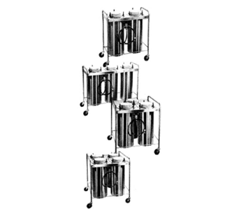 Caddy Magic Dish Dispenser, open style, heated, staggered, (3) self-leveling adjustable dispensing cylinders, approximate dish size 10-1/4" to 12" dia., reinforced stainless steel top, welded stainless steel tubular frame, stainless steel electric box, on/off switch, adjustable thermostat, 4" swivel casters (2 with brakes), 120v/60/1-ph, 16.3 amps, 1950 watts, NEMA 5-20P, ETLus, NSF