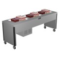Frost Top Unit, electric, 113"W x 26"D x 35-1/4"H, open base, accommodates (6) 26" sheet pans - front to back, stainless steel construction, vertical corner bumpers, 4" heavy duty swivel casters (2 with brakes), 3/4 hp, self-contained refrigeration, cord with plug, NSF (contact factory for price)