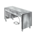 Frost Top Unit, electric, slimline, 57"W x 18"D x 35-1/4"H, open base, accommodates (2) 18" sheet pans-front to back, stainless steel construction, vertical corner bumpers, 4" heavy duty swivel casters (2 with brakes), 1/2 hp, self-contained refrigeration, cord with plug, NSF (contact factory for price)