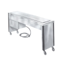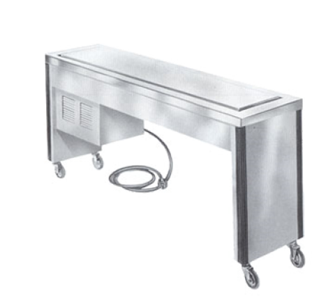 Frost Top Unit, electric, slimline, 109"W x 18"D x 35-1/4"H,open base, accommodates (4) 18" sheet pans-front to back, stainless steel construction, vertical corner bumpers, 4" heavy duty swivel casters (2 with brakes), 3/4 hp, self-contained refrigeration, cord with plug, NSF (contact factory for price)