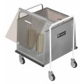 Dish/Tray Caddy, 25-3/4"W x 26-1/4"D x 30-1/4"H, double sided, enclosed with hinged plastic cover, unheated, capacity plates (160) 9", (240) 7", (240) 6", (320) 5", trays (100) 10" x 14", welded stainless steel construction, continuous neoprene bumper in stainless steel channel frame, 4" swivel casters, NSF