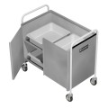 Bussing Caddy, 23"D x 35-3/4"W x 35-1/2"H, enclosed back & sides, (2) shelves, top shelf recessed 11", (2) hinged fiberglass reinforced plastic doors, stainless steel construction, continuous neoprene bumpers set in stainless steel channels on sides, 4" heavy duty swivel casters, NSF