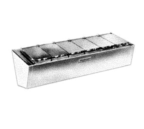 Condiment Caddy, counter top, 29" long, (6) compartment, plastic removable condiment jars with 2-1/2 quart capacity each, individually hinged stainless steel covers, stainless steel construction, non-slip rubber feet, NSF