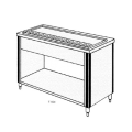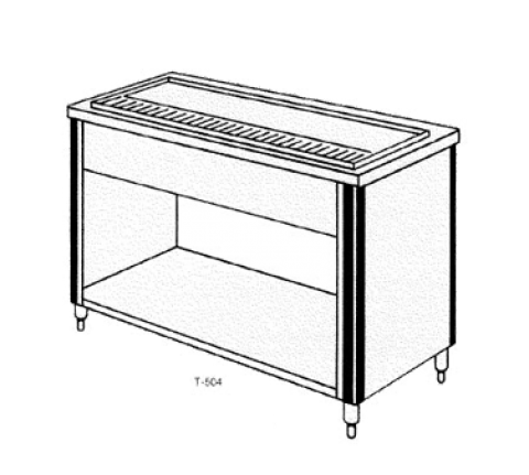 Urn Stand, double service, 52"W x 34" H X 31-1/2"W, drop in top, roll bead lip, pitched trough, stainless steel construction, vinyl gasket, removable non-splash drainer plate with drain & valve, 6" adjustable legs & bullet feet, plastic vertical bumpers, NSF