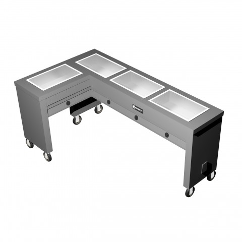 Hot Food Caddy, electric, slimline, open base, (4) 12" x 20" x 6-3/8" deep hot food wells, L-shaped, left-handed, insulated wells with individual heat controls, stainless steel construction, vertical corner bumpers, 4" swivel casters (2 with brakes), ETLus, NSF