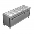 Hot Food Caddy, electric, enclosed heated base, 82"W x 26"D x 34"H, (5) 12" x 20" x 6-3/8" deep hot food wells, insulated wells with individual heat controls, (5) compartments accommodate (20) full size 2-1/2" deep pans, stainless steel construction, vertical corner bumpers, 4" swivel casters (2 with brakes), ETLus, NSF
