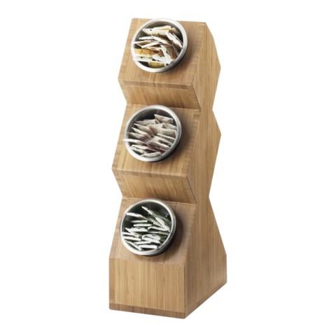 Cylinder Display, 6-1/4"W x 9-1/2"D x 22-3/4"H, 3-tier, vertical, single tower, accommodates (3) cylinders, bamboo (cylinders solid separately)