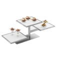 One By One Tiered Riser, 32-1/4"W x 13"D x 10-1/2"H, 3-tier, square, (3) white Corian shelves, stainless steel, silver