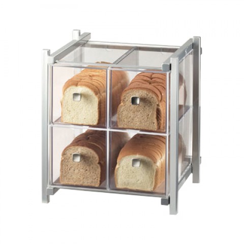 Bread Case, 14"W x 14-3/4"D x 15-3/4"H, 2-tier, (4) acrylic drawers with knobs, acrylic body, metal base, silver