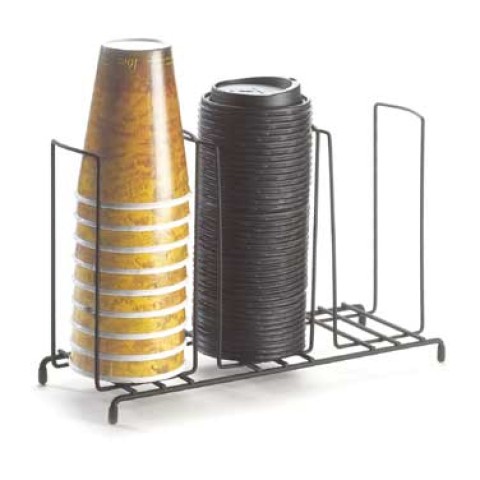 Cup/Lid Organizer, 13"W x 4-1/2"D x 8-1/2"H, (3) section, accommodates cups/lids up to 4" dia., black iron frame