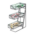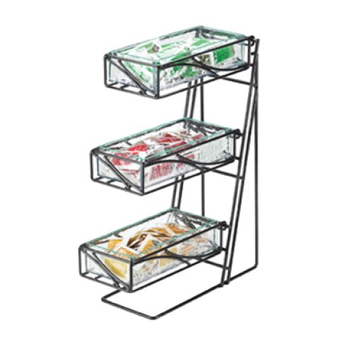 Condiment/Flatware Display, 5-1/4"W x 14"D x 18"H, 3-tier, removable acrylic bins, black wire frame